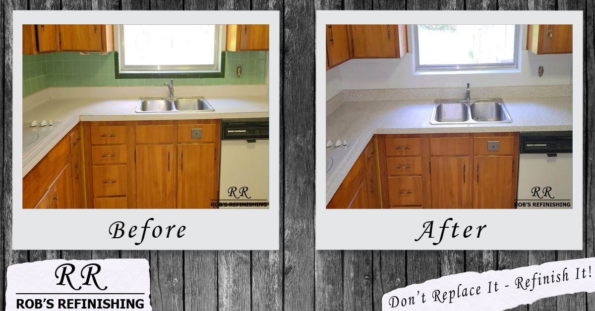 Existing laminate and ceramic tile countertops can be refinished in a matter of hours without the mess of a replacement job and at significant cost savings when compared to replacement. The longevity of the refinished countertop should be the equivalent or exceed that of the original countertop.